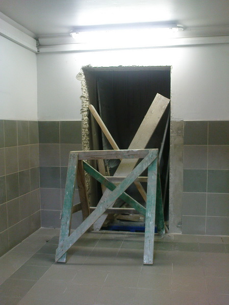 supermarketu. Až na večer začali prekrývať dieru v stene