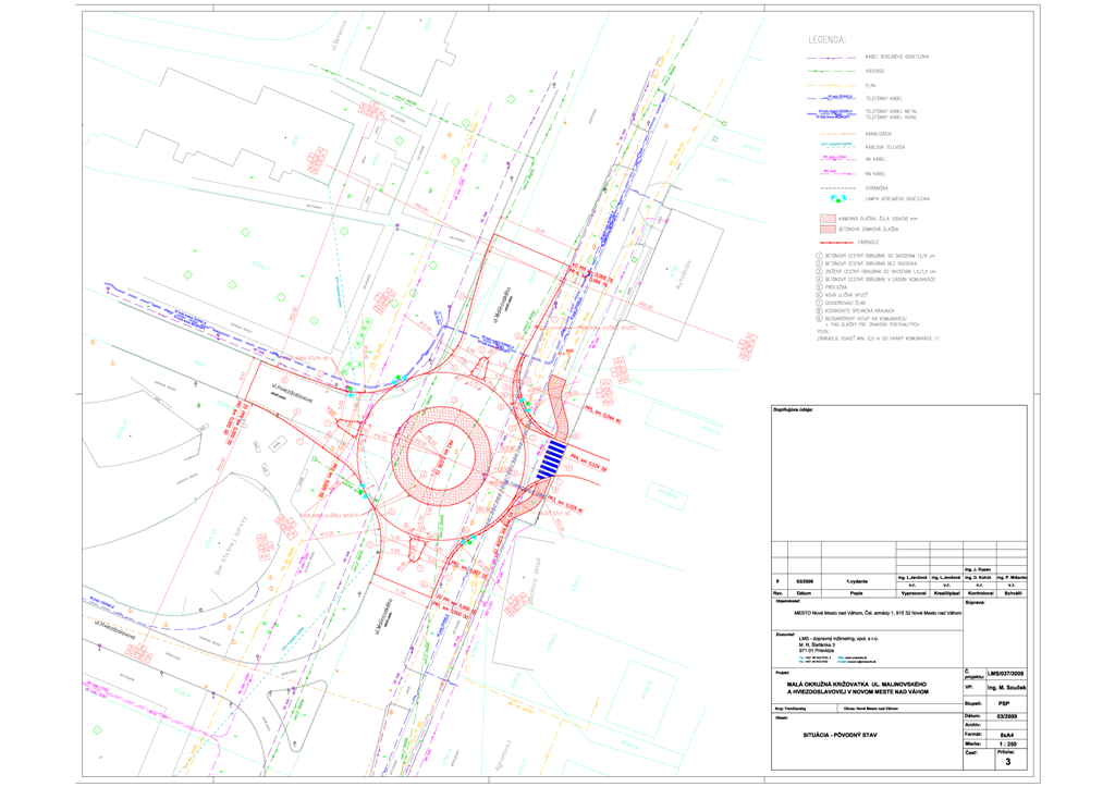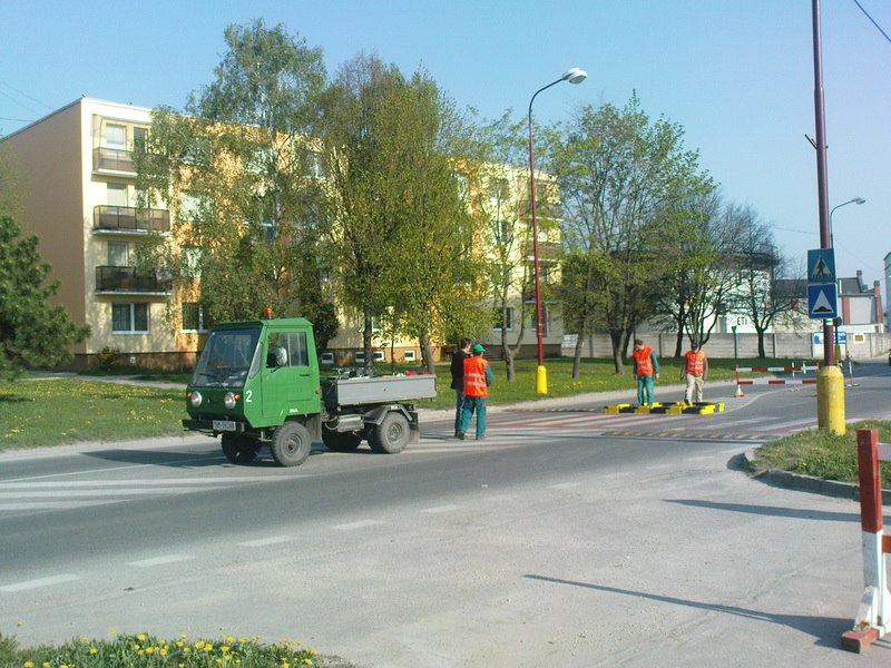 križovatka. Prebiehajúce stavebné práce súvisia s 1.