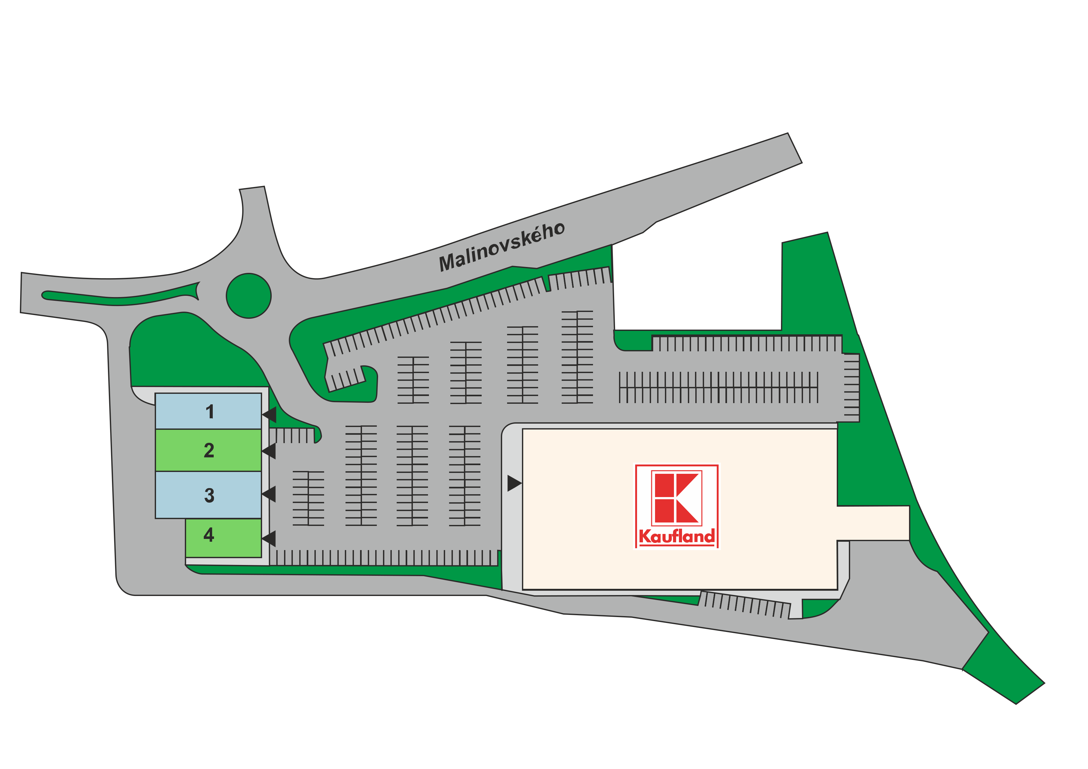 - KAUFLAND, vrátane 200 parkovacích státí (budova