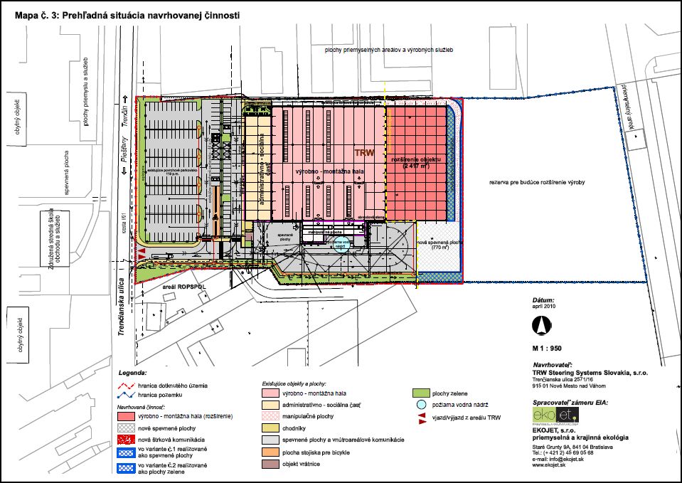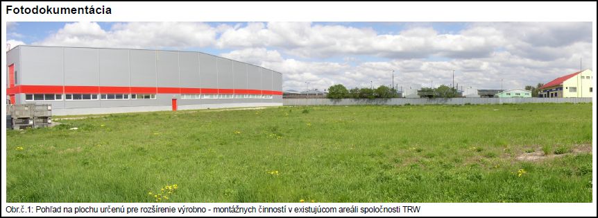 rozširovaním výroby v jestvujúcich priestoroch výrobného areálu TRW Nové Mesto nad Váhom na ul. Trenčianska. Účelom je rozšírenie výroby o montáž kompletného systému posilňovača riadenia automobilov